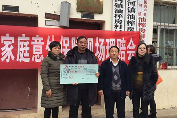 12月15日,昭通市昭阳区计生协会和中国人寿保险公司昭通分公司到昭阳区盘河镇油榨房村对计划生育家庭意外伤害保险参保户刘品荣进行现场理赔。