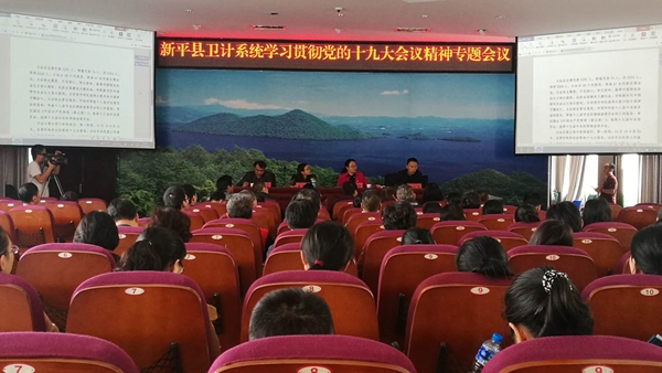 新平县卫计局联合县计生协组织召开了学习贯彻党的十九大精神专题会议。会议要求全县卫计系统各级医疗卫生机构要精心组织、周密部署,把学习党的十九大精神与学习贯彻习近平总书记在全国卫生与健康大会上的重要讲话精神结合起来,与学习贯彻《党章》结合起来,与“两学一做”学习教育常态化制度化结合起来,深入宣讲造声势,迅速兴起学习宣传贯彻党的十九大精神的热潮。