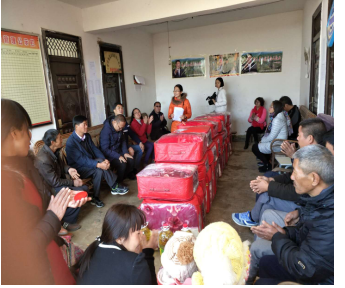 【峨山县开展干部职工自愿捐款扶贫活动】峨山县岔乡棚租坝村委会现有建档立卡户34户,其中C、D级危房户2户。2017年12月30日,县卫生计生党工委钟斌书记、局长带领20多位干部职工,用卫计系统机关、计生协会干部职工捐出的8000多元缮款,购买了电视机、踏花被、桌子、凳子等送到贫困户家中并进行走访慰问。