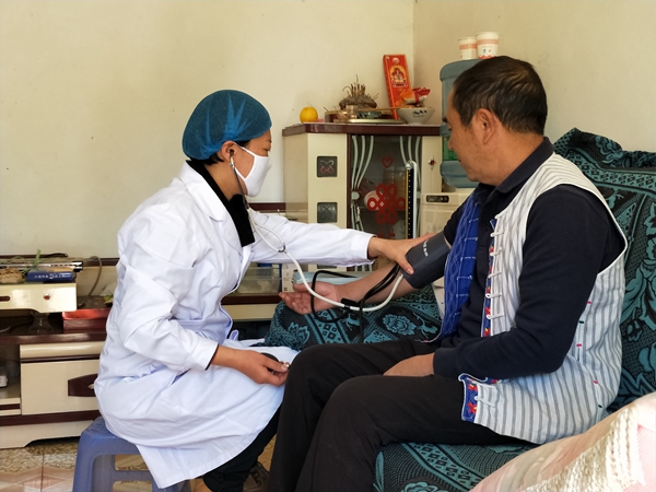 1月23日中午,弥勒市西三镇卫生院的何艳医生一行3人来到了可邑村建档立卡贫困户龙学家里,为他和老伴量了血压、把了把脉,告诉他现在血压不高,每天要按时吃药等等。“有了家庭医生,我不再因为高血压吃什么药而犯愁.......”龙学高兴地说。