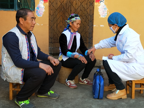 可邑村是一个高寒山区,全村189户735人都是彝族支系——阿细族,年龄偏大的阿细老人汉语表达十分困难,往往是小病拖,大病扛,实在扛不过去,才到城区大医院就治,导致这里的群众贫困面大。去年镇卫生院到该村开展家庭医生签约服务工作时,群众最担心的就是怕上当受骗,签约工作一度进展缓慢。56岁的龙学不仅是一名党员,还是一名计生协会会员,他带头宣传政策,并和家人一道与医生签了服务协议,是可邑村第一家签服务协议的。服务结束后,龙学和老伴将何医生一直送到大路,才依依不舍地回到家里忙活计。