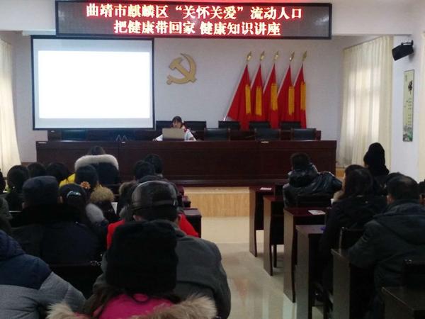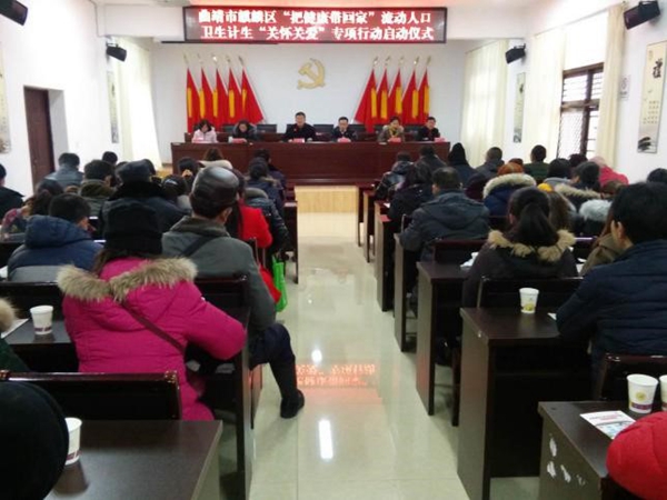 2月2日,曲靖市、麒麟区卫生计生委(局)、计生协在麒麟区寥廓街道举行 “把健康带回家”流动人口卫生计生关怀关爱专项行动启动仪式。曲靖市、麒麟区卫生计生委(局)、计生协及麒麟区寥廓街道办事处有关领导和流动人口共150余人参加了启动仪式。