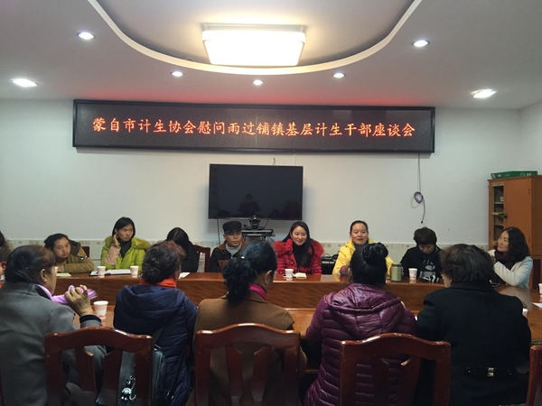 在春节来临之际,蒙自市计生协拓展关怀服务范围,以从事计生工作20年以上的老计生干部为重点,多形式慰问关怀,稳定计生干部队伍,做好“老带新”传帮带工作。