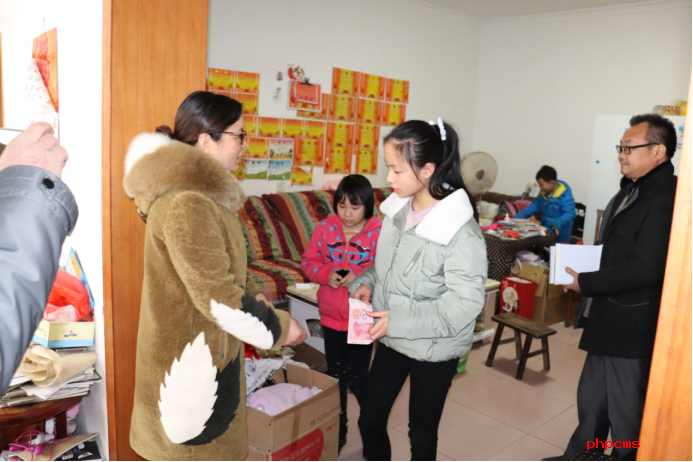 (图为工作人员慰问双女计生户留守俩姐妹)