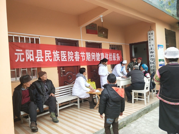 近日,元阳县卫计局、县计生协动员14个乡镇卫生院集中开展政策宣传进村寨、走访慰问、全民健康体检“三服务”活动,把“健康年货”提前送给老百姓,确保他们过上健康、欢乐祥和的春节。