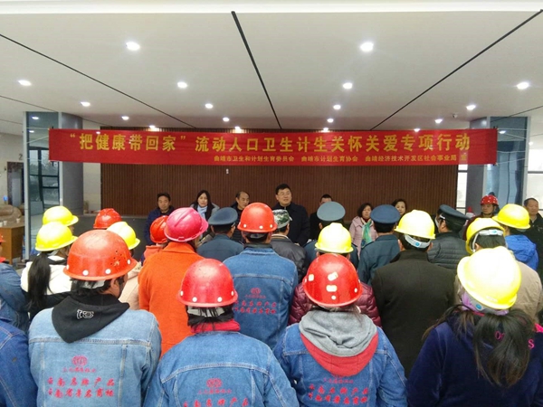 2月7日,市卫计委、市计生协与曲靖经济技术开发区社会事业局联合走进云南三元德隆铝业有限公司,开展 “把健康带回家”流动人口卫生计生关怀关爱专项行动。
