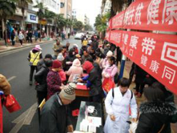 2月7日,寒冷的风带着阵阵春意,宁新街人头攒动,赶街的群众驻足观看,一场别开生面的“迎新春三下乡”活动,在图书馆门前拉开了序幕。卫生计生局、计生协会在街头设立计生政策咨询、免费避孕药具发放、健康咨询服务点,工作人员向过往群众发放《玉溪市流动人口基本公共卫生计生均等化和健康知识宣传手册》、《流动人口留守儿童健康教育核心信息》、《留守儿童监护人健康教育核心信息》等20余种宣传资料5000余份,防治艾滋病日历500张,展出卫生健康科普知识展板10块,为群众义诊测血压100余人。