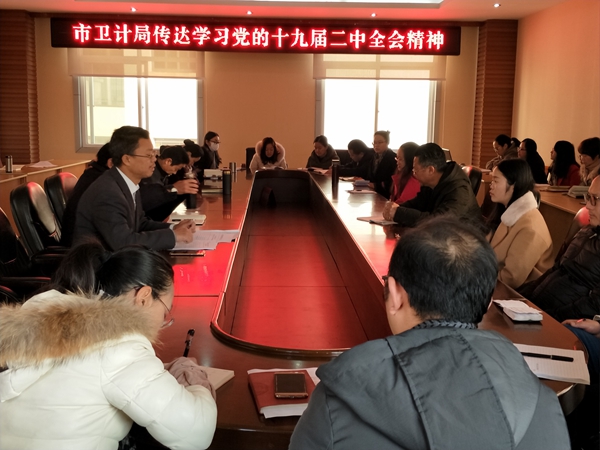 2月9日,弥勒市卫计局、市计生协会组织机关48名党员、干部传达学习习近平总书记在党的十九届二中全会上的重要讲话精神和全会精神。