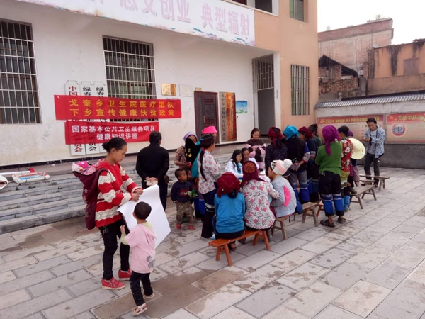 3月14-18日,绿春县戈奎乡计生协、乡卫生院联合组织医护工作人员,携带宣传版面、宣传资料和医疗检查器械,深入9个村委会辖区,逐村宣讲健康扶贫知识和开展义诊活动。