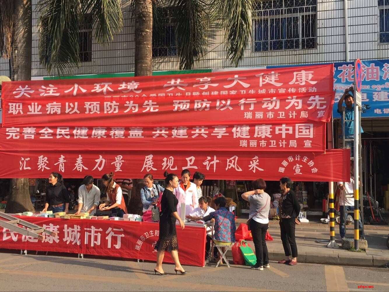 4月24日上午,瑞丽市卫计局、计生协、爱卫会、市妇幼保健院等多个部门联合开展“世界卫生日”宣传活动及瑞丽市创建国家卫生城市宣传活动。