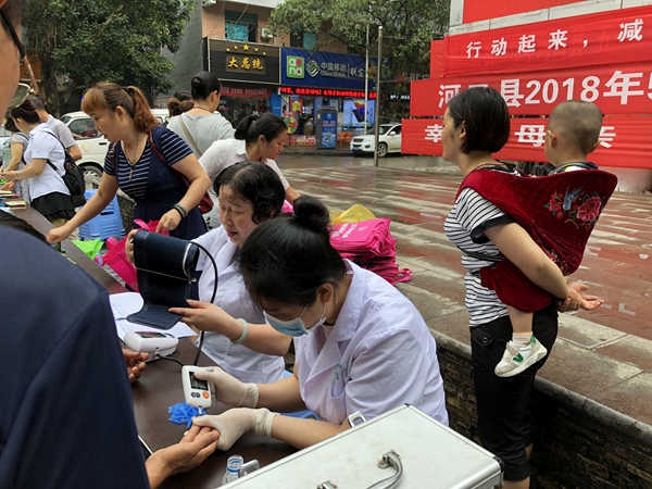 活动现场,为群众提供血糖和血压检测,提供健康知识咨询指导,并发放《增补叶酸》、《流动人口计划生育服务指南》、《全民健康生活方式行动》、《全面二孩宣传政策》、《打击“两非”》、《民族团结、和谐社会》、《中华人民共和国反家庭暴力法》等健康知识宣传手册、折页共1000余份,纪念品(围裙、口杯)300余份,悬挂横幅3条,免费义诊20余人。现场气氛热烈,吸引了100余群众积极参与。