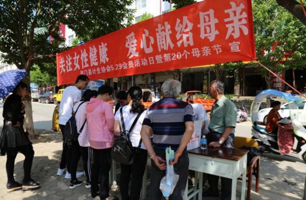 5月10日,易门县计生协会、县红十字会、龙泉街道计生协会、县中医医院、县妇计中心、龙泉卫生院等6家单位共21人,在龙泉街道朝阳路联合开展了5.29会员活动日暨母亲节宣传活动。
