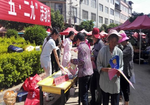 5月17日,建水县南庄镇计生协联合镇中心卫生院在南庄农贸市场开展“5.29会员活动日”宣传服务活动。