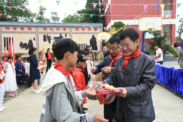 活动当天,市计生协、中国人寿保险曲靖分公司及罗平县卫生计生局、计生协有关领导到大水井乡金庆完校为全校学生送去儿童节祝福,为每位学生发放书包、文具等节日慰问品,为学校赠送篮球、羽毛球拍和乒乓球拍等体育用品。并与该校的留守儿童亲切交流,嘱咐孩子们感恩父母,好好学习,立志成才。