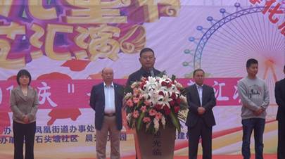 活动中,凤凰办事处党委书记高云宣布鑫泰盛建材城流动人口计生协会建设项目启动,鑫泰盛建材城流动人口计生协会会长冯建兵作表态发言,市区两级领导在“六一儿童节”来临之际,为石头塘社区困境儿童送去了书包等学习用品和节日的问候,晨光幼儿园大、中、小班的小朋友们为在场的观众送上了一场精彩的文艺表演。