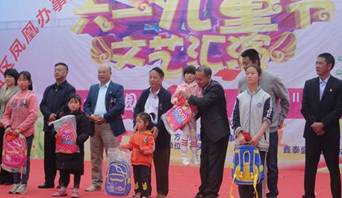 启动仪式上,凤凰办事处党委书记高云宣布昭阳区凤凰办事处鑫泰盛建材城流动人口计生协会建设项目正式启动,鑫泰盛建材城流动人口计生协会会长冯建兵作表态发言,市区两级领导为石头塘社区困境儿童送去了书包等学习用品和节日的问候,晨光幼儿园大、中、小班的小朋友们为在场的观众送上了一场精彩的文艺表演。
