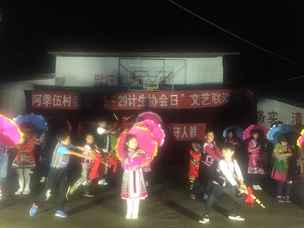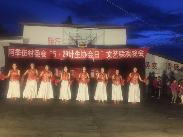 5月30日,屏边县玉屏镇阿季伍村计生协在村广场开展“关爱流动人口,关爱留守人群”主题文艺联欢晚会,欢庆5.29会员活动日。