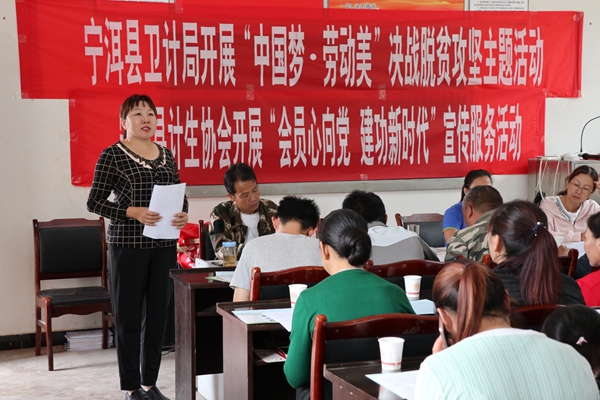 四是宁洱县开展“感党恩、树家庭文明新风尚”宣传培训活动。对健康扶贫政策、防艾知识、计划生育法律法规和计生家庭意外伤害保险知识开展宣传培训,调动广大职工参与脱贫攻坚工作的积极性,助推脱贫攻坚工作的开展。培训中共发放计划生育政策、防艾知识、健康扶贫等宣传单五类300份。