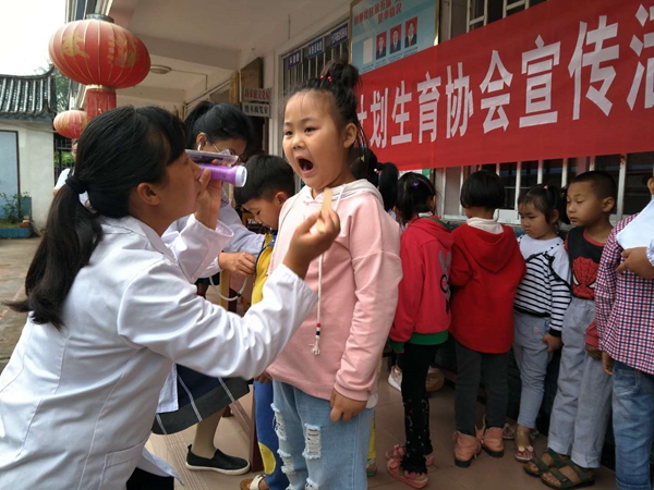 五是镇沅县计生协在按板镇社区开展5.29宣传活动,保健院医生为按扳镇小附属幼儿园议诊。