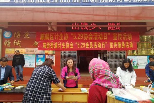 (麒麟区计生协会、珠街街道计生办)5月27日,麒麟区计生协会、珠街街道计生办联合在珠街街道社区卫生服务中心门口开展了“以深入推进计生协会改革发展,全面落实六项重点任务” 为主题的宣传活动。本次活动现场发放宣传资料200份,发放避孕套300只,免费测量血压150余人,中医义诊人数85人。
