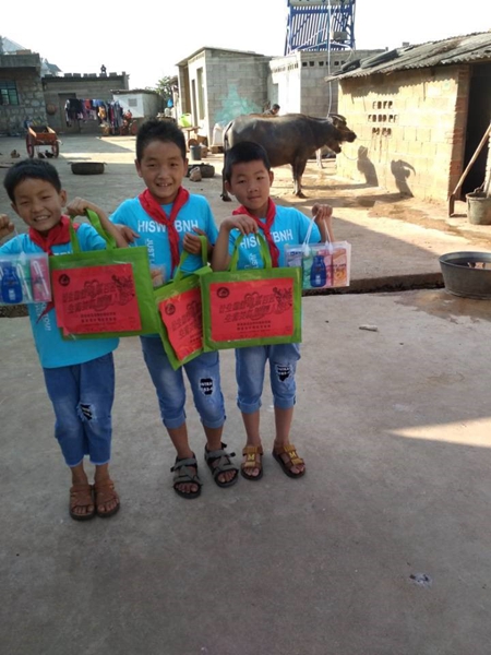 当慰问组给小女生穿上精心挑选的公主裙,小男生穿上崭新的T恤牛仔裤,并把儿童牛奶送到他们手中。留守儿童们一改往日的羞涩,开心得各种摆拍,在慰问组的镜头下留下了最快乐的镜头。
