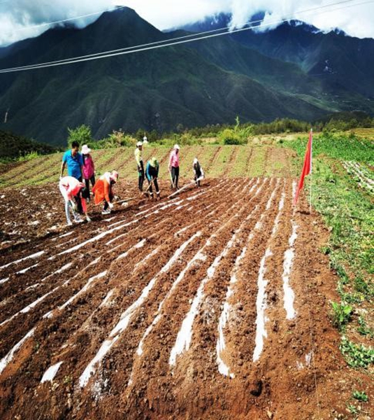 6月13日,得知这一情况的,香格里拉市计生协会驻村工作队员与新阳驻村工作队、村三委成员自发组织到正在发愁的追玛七林家,帮她家种植中药材金铁锁,在十余名工作人员的努力下,历时六个小时,8000株种苗全部种植完成。在濛濛细雨中,大家已分不清身上的是汗水还是雨水了,但大家的心里都充满着喜悦,充满着对追玛七林一家早日脱贫致富的期望,更加坚定了大家认真落实脱贫攻坚的各项措施,助力新阳人民努力实现“脱贫、摘帽、增收”的信心。