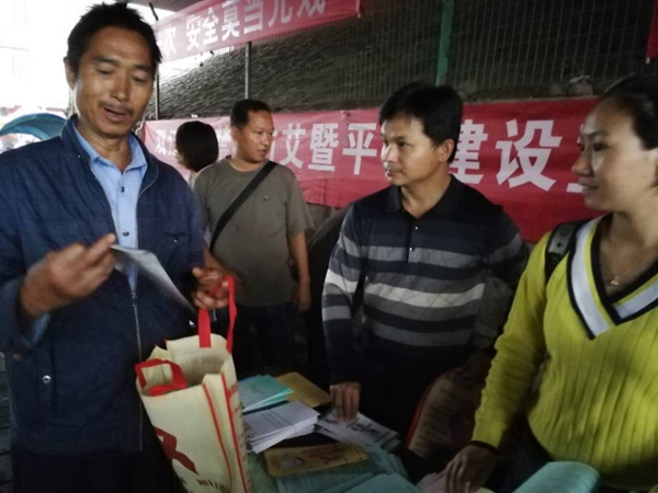 生协、局相关股室人员来到活动现场,与双江街道、县禁毒办、公安局、司法局、综治办、妇联、团县委等单位一起联合开展“6·26国际禁毒日”宣传活动。通过发放禁毒宣传资料及防治艾滋病、慢性病、公共卫生服务均等化、流动人口均等化服务、计生基层群众自治示范县项目创建、中国计生协八代会和云南省五代会精神等相关资材、提供卫生计生法律法规和政策咨询等形式,向群众宣传普及禁毒知识和健康防病知识,宣传毒品给国家、社会、家庭和吸毒人员自身带来的危害,告诫市民珍爱生命,远离毒品。活动共发放禁毒宣传资料100多份,发放禁毒宣传环保袋、卫生计生政策宣传环保袋250个,发放健康防病知识、计生基层群众自治示范县项目创建、中国计生协八代会和云南省五代会精神等宣传材料18种200余套,解答相关咨询50余人次。