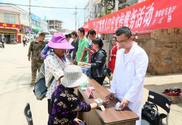 7月11日,曲靖市马龙区计生协在马鸣乡开展了以“共建生育文明,共创健康生活”为主题的世界人口宣传活动。