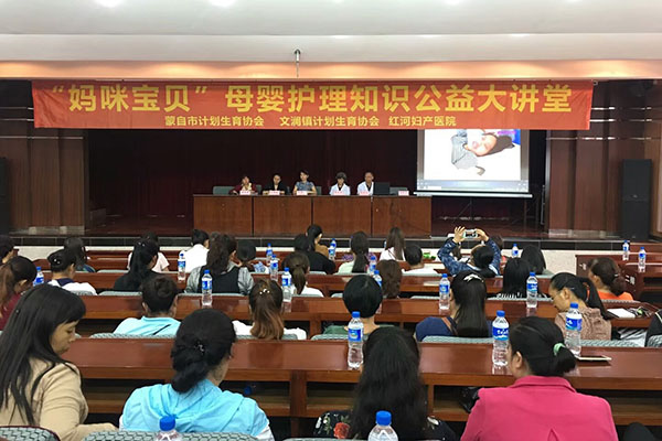 8月3日,蒙自市计生协、文澜镇计生协联合在文澜镇报告厅举办“妈咪宝贝”母婴护理健康知识讲座。