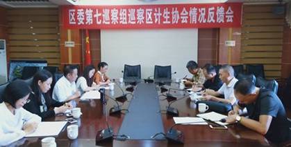 2018年8月10日,区委第七巡察组到区计生协会召开巡察情况反馈会,区委第七巡察组崔讲文组长一行4人,区计生协会全体干部参加了会议,会议由区计生协会会长郭映辉主持。