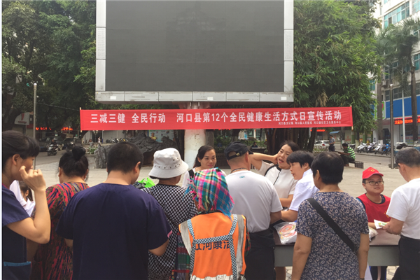 9月11日,河口县卫计局、县计生协会联合县委宣传部、县人民医院、河口镇社区卫生服务中心等单位开展以“三减三健·全民行动”的全民健康生活方式日为主题的宣传活动。