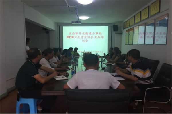 9月7日,文山市开化街道计生协会在沙坝社区卫生服务中心开展了计划生育协会知识培训,市卫计局、沙坝社区卫生服务中心、街道计生专干、消防专员和辖区11个社区计生宣传员参加了此次培训。