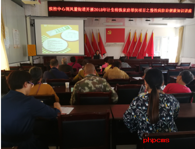 2018年9月11日,澄江县凤麓街道计生协组织辖区内计划生育特殊家庭开展慢性病防治健康知识培训,目的是让计划生育特殊家庭通过对慢性病防治健康知识的了解,尽量做到合理膳食、适量运动、戒烟限酒、平衡心理、健康生活,增强生活的信心和希望,早日走出心理阴影,重新融入社会大家庭。健康知识讲座特邀县疾病预防控制中心健康教育科护师侯瑞进行授课。