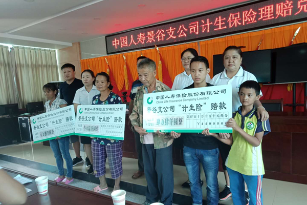 9月28日,景谷傣族彝族自治县计生协、中国人寿景谷分公司一同到景谷县正兴镇开展计划生育家庭意外伤害保险现场理赔兑现活动,中国人寿保险景谷分公司工作人员将98000元理赔金亲手交给了3户人员死亡受险人的家属,为这些家庭送去了党和政府的关怀。