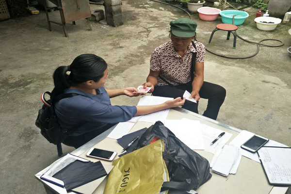 9月19日,按照与农户约定的时间,泸水市称杆乡卫生院、计生协会工作人员在院长、计生协会常务副会耀三金的带领下,来到称杆乡双奎地村进行《幸福工程·救助贫困母亲行动》项目款还款收取。前来还款群众聚集在一起,脸上洋溢着笑容,大家正在讨论该项资金给她们生活上带来的变化,为她们解决的困难。