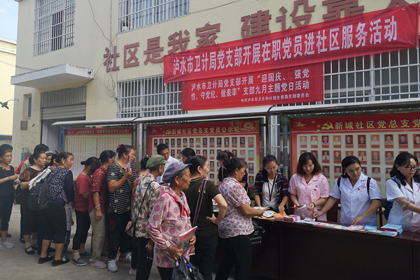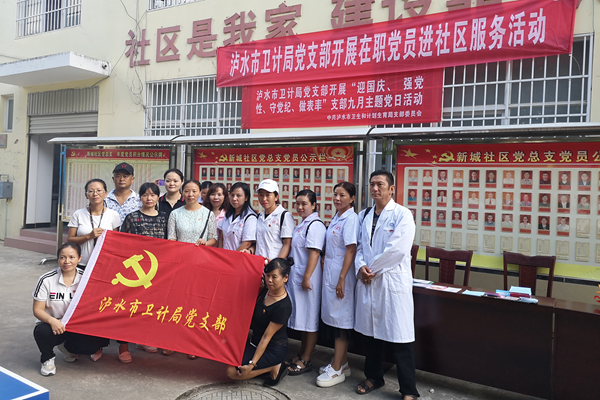 在喜迎建国69周年之际,泸水市卫计局(计生协会)党支部联合六库镇新城社区(计生协)党总支、江西社区卫生服务中心(计生协会)党支部在六库镇新城社区开展了“迎国庆、强党性、守党纪、做表率”在职党员进社区服务活动。