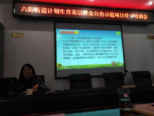 在六街街道启动实施2018年省级计生基层群众自治示范项目仪式结束后,县计生协宣传管理股股长徐黎娜同志采用多媒体的方式,对街道分管计生协工作的领导及社区分管副书记、计生协秘书长等17名领导干部及进行了项目业务培训。通过培训,让基层计生协工作人员对项目工作更加深入理解,掌握了基层计生工作基本要素,能够把握工作的要点,进一步更新了观念,充分认识新时期群众团体的重要地位,增强历史的使命感和工作的紧迫感,自发的带动组织广大会员、育龄群众积极参与社会治理,协助党和政府统筹解决人口问题,促进人口长期均衡发展。