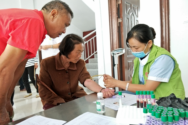 活动中,志愿者服务队热情帮助年龄大且行动不便计生特殊家庭成员到每个健康体检台接受健康体检服务,耐心细致地进行量血压、量身高、抽血化验和心电图等方面健康服务,建立健康档案,签订家庭医生服务协议。以座谈的方式,与他们拉家常,详细了解生活情况,向他们宣传党的十九大精神和全面两孩生育政策知识,希望他们保持良好心态,安度晚年、幸福长寿。