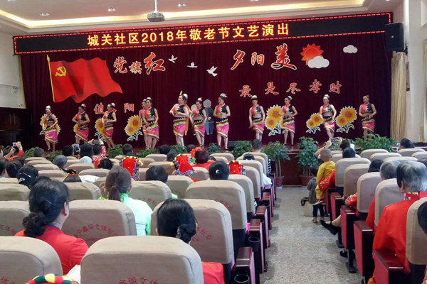 10月16日,华宁县宁州街道城关社区计生协会、妇联组织开展了以“党旗红 夕阳美”为主题的敬老节活动。来自社区计生协会、妇联和驻社区单位的20支文艺队参加了演出,现场180多人观看演出。