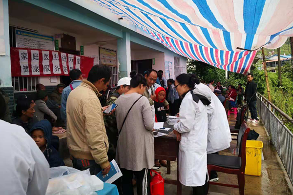 医疗服务 惠及百姓 10月8日-14日,石月亮乡卫生院业务骨干及米俄洛村卫生室医务人员组成家庭医生履约服务团队,深入14个村民小组,逐户对签约对象开展家庭医生签约履约服务。活动现场,团队医务人员对照家庭医生签约协议和服务包含内容,仔细耐心地为村民量血压、测血糖,结合他们的身体状况,给予对应的健康指导意见,并宣传了签约对象可享受的常见病诊治、新农合优惠报销、基本公共卫生服务、门诊基本医疗服务等惠民政策及艾滋病防控知识,切实履行了家庭医生“健康守门人”的职责,增强贫困群众对健康扶贫工作的获得感、认同感和幸福感。
