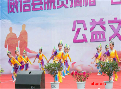 此次公益文艺演出活动参演节目有歌舞、芦笙舞、相声、小品等节目十余个,来自全县的十四家单位有演职人员近百人参演,现场观众达五千余人。