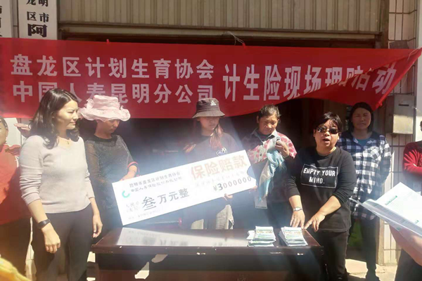 阿子营牧羊村委会石槽村投保人李某,在工作时不慎意外身故。盘龙区和阿子营街道计生协及时与中国人寿保险公司协调,保险公司按照理赔规定,向李某家人赔付3万元保险理赔金,给这个不幸的家庭送去了温暖和关爱。现场还向群众宣传计生家庭意外伤害保险知识,发放宣传品100余份。保险宣传彩页100余份,进一步提高群众对计生保险知识的认识度和知晓率。