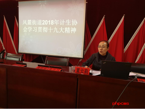 2018年10月31日凤麓街道组织计生系统干部深入学习贯彻党的十九大精神专题学习班上特邀请街道党工委董云莉副书记进行讲解。街道计生协、社区计生协及小组计生协部分骨干共60人参加会议。