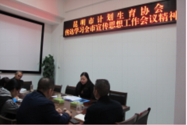 11月12日,昆明市计生协组织机关全体干部,传达学习全市宣传思想工作会议精神,研究贯彻落实意见,党组书记、常务副会长普跃英主持会议。