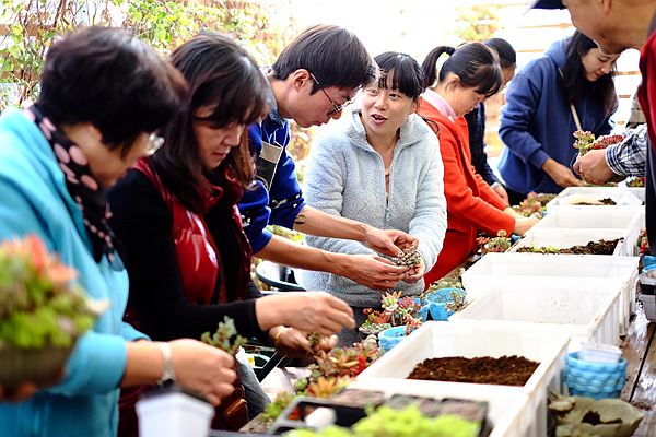 优优多肉馆资深多肉种植养护师程刚,带领大家参观品种繁多、形状多样的多肉花卉后,为大家教授多肉植物浇水、日照、病虫害防治等日常养护知识,现场示范多肉种植。在温馨愉悦的氛围中,会员们开始动手操练起来,将一棵棵肉肉种在拼盘内,铺上白色的石子作为点缀,一盆盆精致的多肉拼盆相继呈现在大家的眼前。大家捧着自己精心栽植的作品心情舒畅,纷纷合影留念。