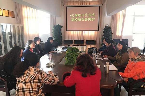 12月6日,云南省计生协会高校联合会2018年第四次例会在西南林业大学召开,参加此次会议的有联合会秘书组成员以及会员单位计生干部等。会议由高校联合会秘书长王月英主持。