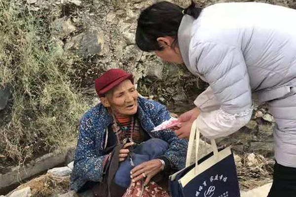 在东旺乡,首先前往胜利村麻绒组七主追玛家走访慰问。七主追玛家中的顶梁柱江参不慎车祸遇难,虽然买了保险,但属于无证驾驶,不符合理赔标准,本来是10口之家又拮据的家庭雪上加霜。市计生协会了解到七主追玛家属于建档立卡贫困户,积极向迪庆州计生协会和迪庆州人寿保险公司反映情况,三家单位积极帮扶,以慰问形式看望两位老人及其家人,并为他们带去10000元慰问金,鼓励他们克服困难,勤劳致富。