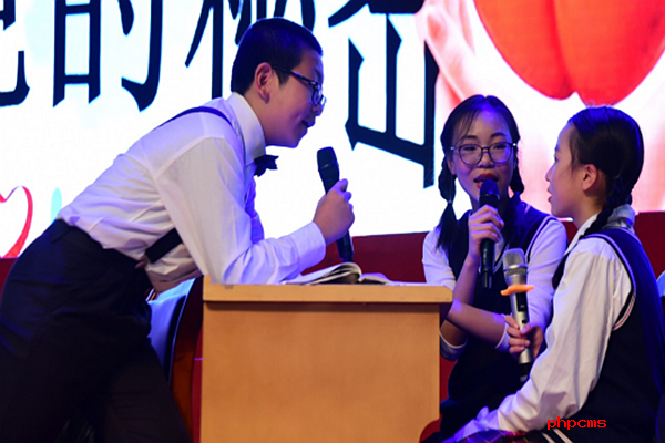 活动现场,在心理老师和班主任的精心编排指导下,初一、二年级1811班和1705班的同学们完成了主题为《不能说的秘密》、《早恋》两部心理剧表演。通过小演员们肢体语言、服装造型、场景道具及音乐呈现,生动形象,富有创意,将社会和家长最焦虑的故事搬上舞台,将异性相吸和亲子冲突、“非暴力沟通”的处理方式等问题,用喜剧的方式展现出来,循序渐进的引导同学们进行思考,现场气氛热烈,屡屡掀起高潮,引发学生共鸣。