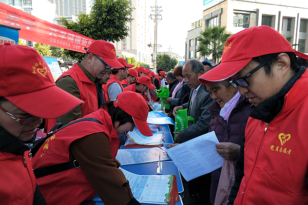 活动以悬挂布标、展板宣传、发放资料、咨询服务、义诊服务等方式进行。活动现场,党员志愿者以套餐方式向赶集群众发放农民工权益保障宣传年画、云南省残疾人优待规定、健康扶贫、流动人口基本公共卫生服务项目等21种政策法规和健康知识宣传资料,热情接受群众政策法规咨询;来自健康教育所的工作人员向群众讲解各种传染病预防知识;来自城东社区医生免费为群众量血压,耐心细致地向群众解答高血压防治疑惑,来自市防艾办的工作人员一边发放防艾用品,一边向群众讲解艾滋病传播途径和预防艾滋病基本知识。