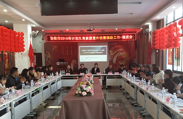 1月4日,弥勒市2019年计划生育家庭意外伤害保险工作推进会在中国人寿保险弥勒支公司二楼会议室召开。